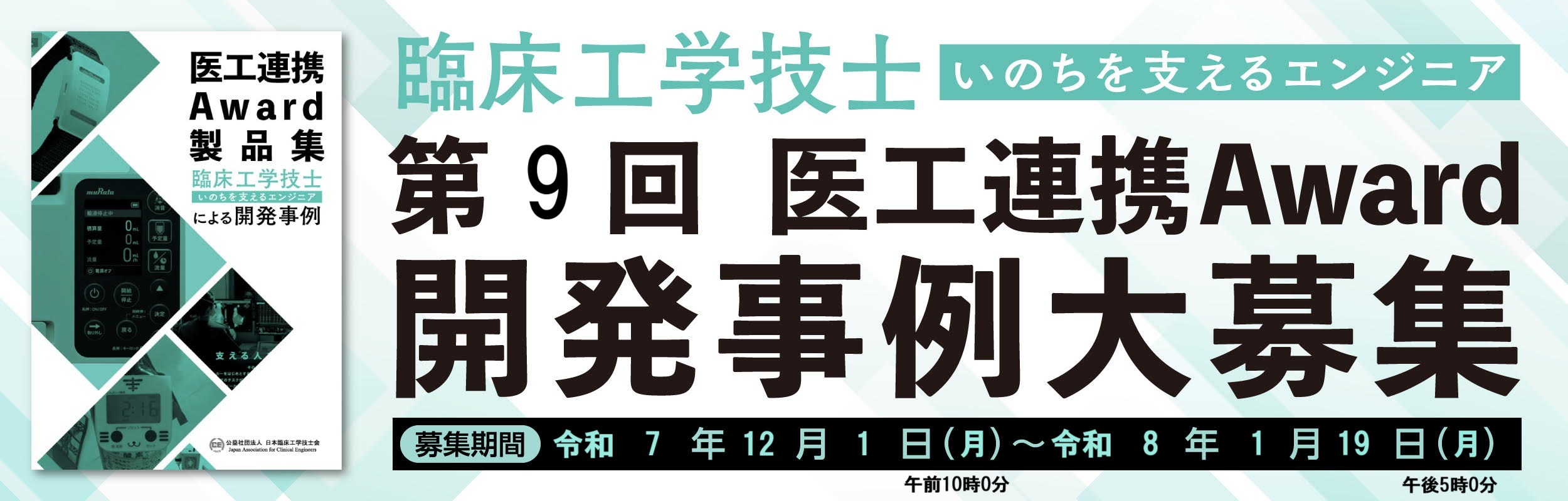 (公社)日本臨床工学技士会 臨学産連携委員会 公益社団法人日本臨床工学技士会では、「第9回 医工連携Award」として医工連携に関わった 開発・改良事例について表彰します。下記の要領で募集しますので応募をお待ちしておりま …